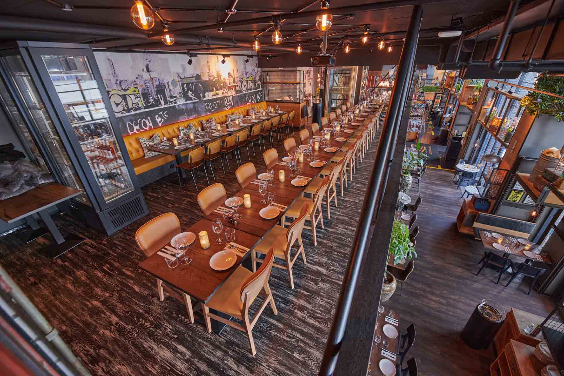Vår restaurant har en egenartet arkitektur og utforming, noe som byr på en spennende restaurant-opplevelse og fantastiske muligheter for arrangementer, fester og selskap.