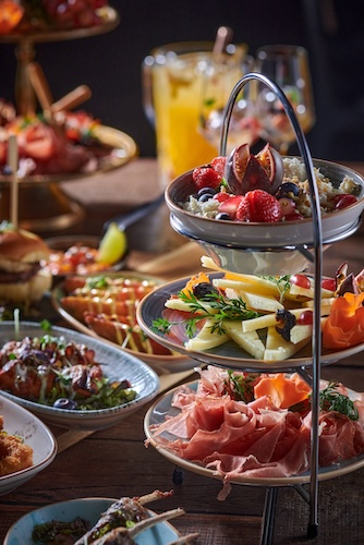 Blandet salat, grønnkål, mango, valnøtter, kikerter, friske bær, honningvinaigrette
